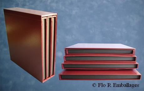 Nous fabriquons également sur mesure : - Boîte d'archive en carton (boîtes à archives) avec ou sans personnalisation. - Coffret en bois recouverts de toutes sortes de revêtements (papier, simili cuir, tissu). - Coffret en carton avec mousse de protection à l'intérieur pour le transport et le conditionnement d'objet fragile nécessitant une protection optimale. - Boîte en carton renforcée de grand format pour le transport d'objet lourd et/ou volumineux. - Coffret en carton recouvert pour tout type de bouteille (cadeaux de fin d'année, cadeaux événementiels ou publicitaires...) |