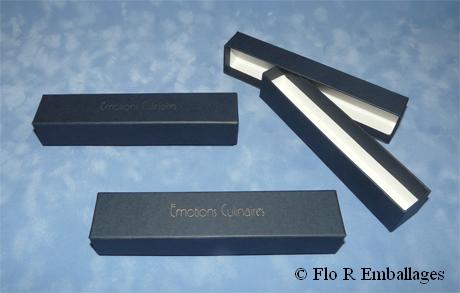 ----------------------------------------- Possibilité de personnaliser avec des logos ou des textes en marquage à chaud ou en impression offset, impression numérique, pour apporter un plus à votre boîte, avec des formes plus ou moins originales, boîte en forme de coeur, boîte en forme d' étoile, boîte cubique, boîte triangulaire, boîte ronde... Cliquez ici pour tout savoir sur nos boîtes imprimées et autres diverses impressions. |